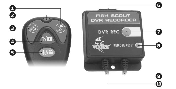 1. Playback/Right: Press to playbackvideos/photos or move right when selecting menu items.