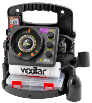 FLX three-color display technology / Night Mode/ Low Power mode / Ranges to 300 feet / Low power 6’ zoom option / three color display pallet selection/ Low Battery Alert display / Two zoom zones / 20 step IR settings/10-foot depth ranges to 40 feet / Target ID of less than ¼ inch / 525 lines of resolution/ 1,000 watts Peak to Peak / Unit draw 175 mA / Operating voltage: 10.5-15 Volts / 12 volt, 9 amp hour battery and charger/ Pro Pack II Carry case/ 12 degree Ice-Ducer transducer / weight 13 pounds / Soft Pack Carry case optional / Night light is optional