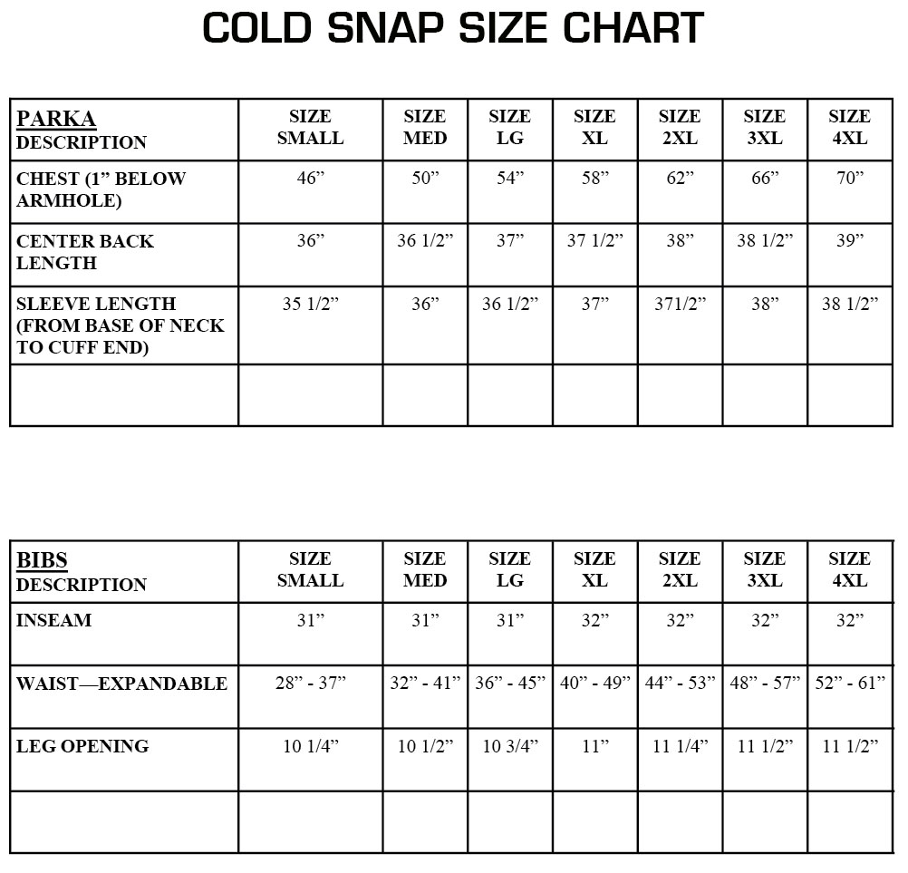 The parka is lined with 240 gram polar fleece to keep you toasty warm on those bitter cold days. The outer shell is an extremely wind and water resistant using a 300D Nylon. The jacket sleeves have a comfortable inside storm cuff with the addition of an adjustable Velcro closure on the outer shell cuff. The Cold Snap Parka has a total of 15 pockets to keep your gear with-in your reach. A custom designed detachable over-sized hood comes with easy access clinch cords and a built-in brim. Available in sizes Small to 4XL.